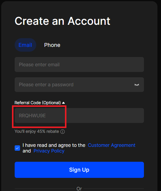 (만약 입력되어 있지 않거나, 다른 코드로 가입시 45% 페이백 혜택 받지 못함)